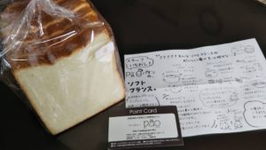 お店に入ると、ぷーんとパンの良い香りがしてきて、あれこれと迷ってしまいましたが、とりあえず、四角い食パン 1斤280円(税別)、紅茶風味オレンジパン 200円(税別)、餡入りヨモギ風味ベーグル 190円(税別)を買いました。季節的に、桃風味パンを勧められましたが、次回の楽しみとしました。