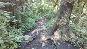 「八十八観音像登山口」から登ると「動物園方面登山口」からの上りより岩場が多く若干急勾配なので、避ける傾向にありました。同じ登山道を往復してみるとなかなか存在感のある巨樹が威厳を示しています。「楽をすることばかりを考えないこと」と、自分自身を戒めながら自然に触れることの奥深さを改めて感じさせられました。