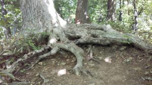 歩き始めると、思っていたほど下山してくる登山者は少なくほっとした思いで上を目指しました。この時季になると、特徴的な花を咲かせる山野草にはお目にかかることは滅多にありません。普段、何気なく通り過ぎてしまう樹齢を感じさせる巨樹の根元に注目してみました。「円山」は天然記念物に指定されていますので、個性的な根元をもつ巨樹があちらこちらに見られます。ある一角の主のようです。