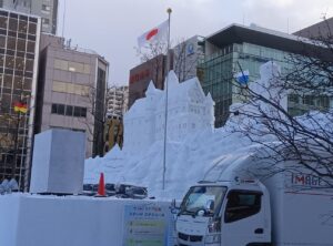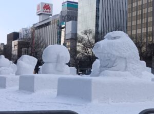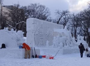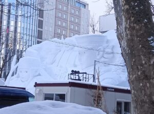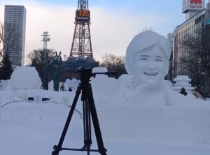『第74回「さっぽろ雪まつり」大通会場』雪像で微笑みかける「大谷君」前日の様子をお知らせ致します。