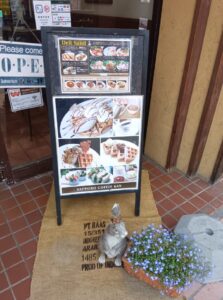 趣を変え、かつて札幌と合併前に独自な賑わいを保っていた「琴似」を散策後、ランチを取ることにしました。「大通」から地下鉄東西線「琴似」へは10数分しかかかりません。かなり遠いところというイメージでしたが、行動を起こしてみるとさほどではありませんでした。平日に訪れてみたところ、「琴似」のメイン通りはスーパーやコンビニ、そして個人商店といった新旧が微妙にマッチした商店が連なっています。スーパーやデパートでの買い物にすっかり慣れていましたが、個人商店の対面で世間話をしながら買い物をする、これも廃れたものではありません。丁度、昼食時になりましたので鄙びた喫茶店を利用してみることにしました。外に置かれていた看板にひかれたのです。