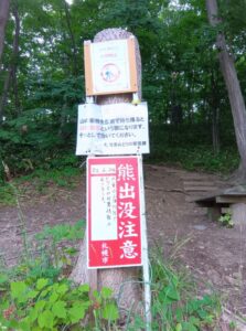 明日から暫く雨模様の天候が予想されます。「三角山」はクマ出没のため登山道が閉鎖されていましたが、やっと解禁となったというニュースがありましたので久し振りに「三角山に登ろう。」と、登山口へ向かいました。自宅から一時間程の道のりです。辿り着くまで汗だくになってしまわないように気をつけました。さあ、北1条通りを「三角山」の「宮の沢」登山口の標識に従って左折しました。ところが、駐車場は閑散としていて車が一台も停まっていません。閑散としています。何か嫌な予感がしてきましたが、「令和6、6、24 クマ出没注意 札幌市」とあり入山禁止とはなっていませんでした。