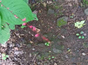 そして、登山道脇のランのような赤い小さな花をつけた野花です。