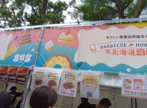 北海道産の砂糖や素材を使用した会場限定オリジナルスイーツが数量限定で販売されていました。直ぐ近くには椅子とテーブルがあり、飲食できるスペースが用意されています。