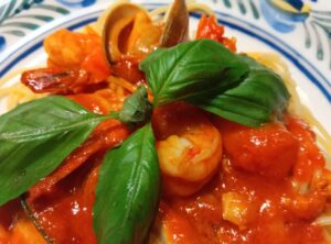 マンネリ化している夕食なので、自身では手作り不可能なスパゲッティ「ペスカトーレ」(トマトソース)を・・・