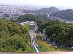 展望台から、隣の山「藻岩山」・「円山」が見渡せます。大勢の観光客が、リフトで山頂へ次から次へと上って来きていました。