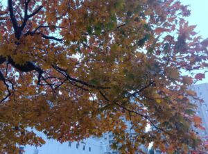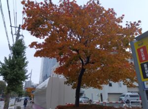 街路樹として植えられている「イチョウ」の黄葉にも大きな違いがあります。真夏のようにまだ緑色をしている「イチョウ」、すっかり黄金色になってしまった「イチョウ」。