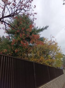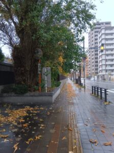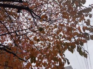 振り返ると「紅葉」した落ち葉と「黄葉」した落ち葉が、雨で濡れた歩道に彩りを添えていました。雨降りは好きではありませんが、「北海道知事公館」の樹木に季節の移ろいがわかり写真に撮ってみようという気持ちにさせられてしまいました。