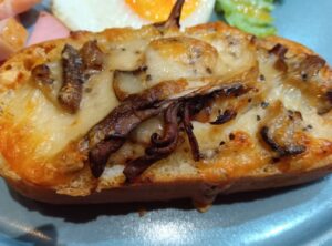〜 きのことホワイトソースのタルティーヌ 〜 とろけるチーズとホワイトソースがミックスされたピザパン風でした。
