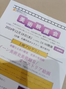 「札幌市民ギャラリー」で「クリスマスコンサート」(16:00〜17:00)で開催される知り視聴を予定していたところ、その前に別室で「美術映画会」が行われることがわかり早めに出かけてみました。