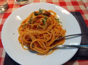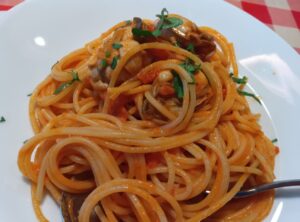 牡蠣とハムのトマト風味クリームスパゲッティ