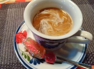 〜 クリームを入れて、お菓子付きコーヒー 〜