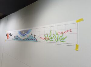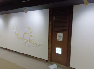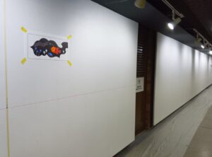 年が明けた1月上旬、チカホの長く続く地下通路「札幌大通地下ギャラリー 500m美術館」に描かれていた壁画が白く塗りつぶされていました。これまでの壁画が、リニューアルされるようです。暫く白塗りのままでしたが、1月22日(水)には次の壁画の原画(四つ切り画用紙大)が貼られていました。担当の方によると、完成は1月25日(土)になるそうです。