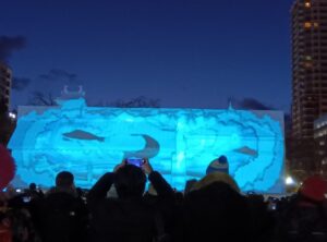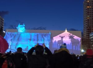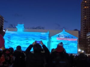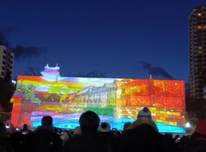 雪像を美しく輝かせるプロジェクションマッピングに期待して、「大通公園」へ