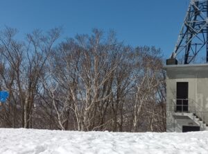 「藻岩山」山頂へ到達です!青空の中に引き込まれるように山頂へ到達しました。
