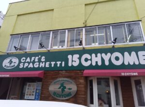 自宅から片道約一時間あまりの道のりを歩き、「レストラン カフェ&スパゲッティ 15丁目」へ向かいました。天気予報通り小雨がぱらついています。足元を気にしながら傘を差して歩きました。今回は特別な思いがありますので、しっかり味わいます。