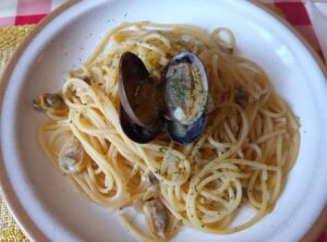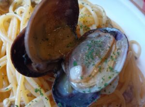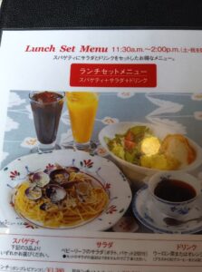 数種類の「ランチタイムメニュー」から「アサリのスパゲッティ」を