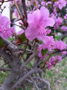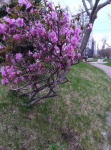 「カフェ&スパゲッティ 15丁目」までは、冬場は徒歩で片道1時間20分くらいかかりましたが最近では1時間余りになりました。「大通ミニ散策路」付近の「エゾムラサキツツジ」が満開です。
