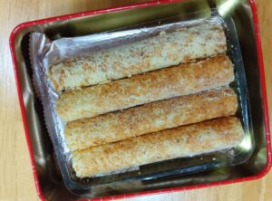 〜 「ザペニンシュラ・チーズエッグロール」 〜 写真では「ちくわ」に見えますが、あの超有名な高級クッキーです。