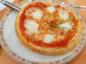 どこで食事をしたり近況報告をしようかということになり、入店してからの時間制限がなくお財布に優しいリーズナブルなレストランというと「サイゼリヤ」かな、となりました。平日のランチメニューは、スープとサラダがセットになっているのとセットドリンクバーが魅力的です。