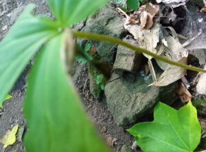 大木の根元に生えている「コウライテンナンショウ」(マムシグサ)は実がない状態のまま、茎はすっかり枯れています。