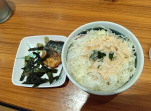 身内は「だし茶漬け用ミニサバ小鉢」とサラダ