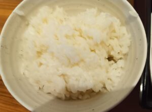 〜 ご飯 〜 硬めに炊いたご飯です。噛むほどに甘みがあり美味しいご飯でした。