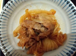 〜 牛肉と白滝・玉ねぎのすき焼き風 〜 自宅ではもっぱら豚肉なので、ほとんど買うことがない牛肉を味わえました。