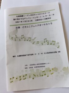 屋外をウオーキングしているとこの暑さが身に沁みてきますので、少し涼しめの「チ・カ・ホ」が多くなりました。先日、北3条あたりのモンベル付近で「夏の思い出」や「オリーブの首飾り」などの爽やかな弦楽器の演奏が響きわたっていました。中学生から高校生によるオーケストラのように思われます。係の方からプログラムが手渡され、それによると、丁度12時からチ・カ・ホ(北3条交差点広場 西)で行われる発表会「札幌演劇シーズン2025キックオフステージ 第41回かでるデリバリーコンサート in チ・カ・ホ」のリハーサル中でした。