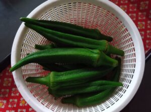 最近は買ったことがなかった、あの、ネバネバとした「オクラ」です。「納豆」や「長芋」などネバネバした食品は身体に良いと言われていますので、早速茹でて「胡麻和え」にしてみました。小口切りにして鰹節をかけ醤油でさっと味付けしてみても「オキラ」本来の味がして格別でした。
