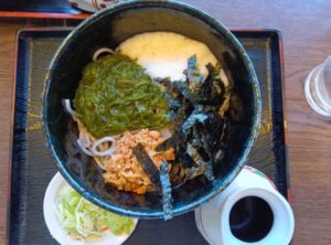 ネバネバものは身体に良いと聞きますので、「ねばとろそば」にしてみました。運ばれてきた丼の中を見ると、ネバネバものばかりでした。お箸では食べずらそうと思いましたが、意外に食べやすかったです。