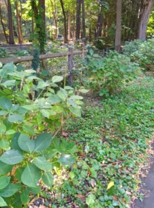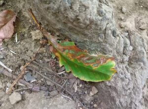 登りでは気付かなかった赤い実の「コウライテンナンショウ」です。もうこの登山道では全くみられないだろうと考えていたのですが、意外な所に生息していました。春からつい最近まで見つけると無くなっていましたのでこの場所はわかりづらく無事だったようです。
