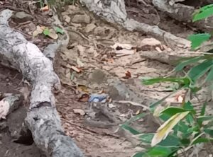 その後、突然、足元を素早くかすめていく気配がしましたので、蛇かトカゲかびっくりしていたところ小鳥の「ゴジュウカラ」でした。暫く目の前を飛び交っています。地面スレスレに飛んでいましたので、何か餌になる昆虫などがいたのでしょうか。