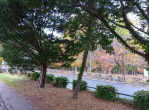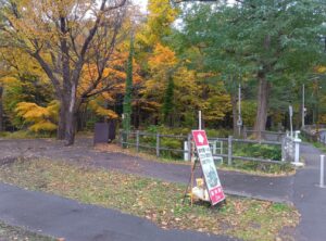 登山口へ向かって歩いていると「円山公園」の紅葉や黄葉が進んでいるのがわかります。