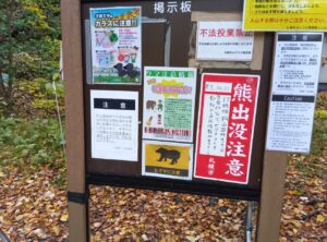 「熊出没注意」をしっかり確認し、晩秋の「円山」山頂を目指して