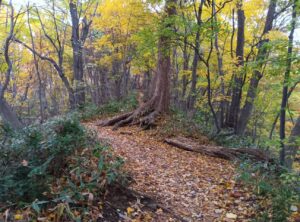 山頂の気温は低めだからか、落葉している樹木もありました。