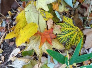〜 赤や黄色、そして縞模様のある落ち葉 〜
