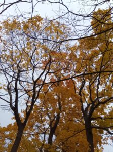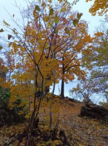 「円山」山頂の一番テッペンに生えている樹木数本は、すっかり黄葉が進み上の葉は落葉してしまいました。