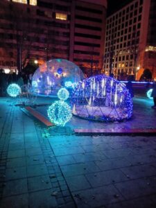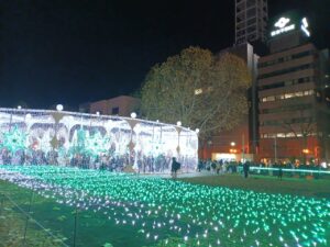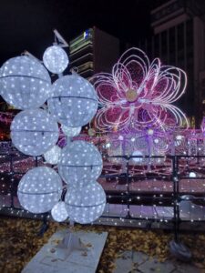 あっという間に陽が沈み「ホワイトイルミネーション」点灯の時刻になり、うっとりするような光景に変わってしまいました。