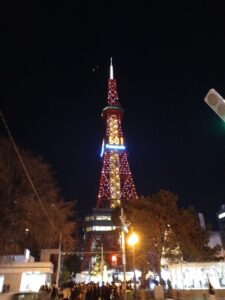 振り返って「さっぽろテレビ塔」を見ると、ライトアップされています。