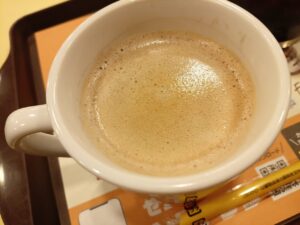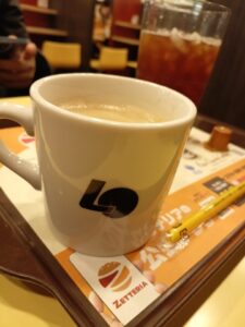午後5時の「ホワイトイルミネーション」点灯からか2時間近くも歩き、午後7時にもなっていました。「ロッテリア」で一休みして飲んだコーヒーでホット一息つけました。