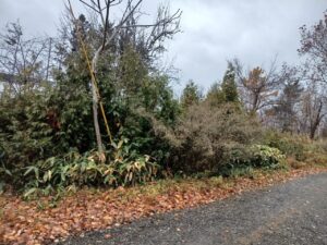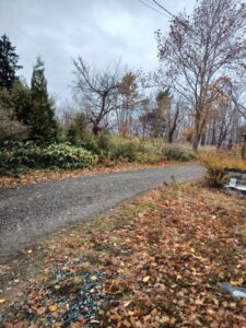 時折降ってくる小雨まじりの強風に、樹木の葉はすっかり落ちていました。友人宅の周りは大自然に囲まれています。