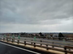 バスに乗車すると、生憎の小雨模様になってしまいました。バスの窓から外の景色を写真におさめました。