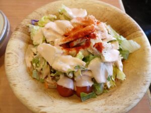 「チキンのサラダ」とメインの「ディアボラハンバーグセット」を