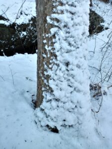 下山中に見つけた、雪で「ちくわ」のようになっている切り株です。