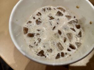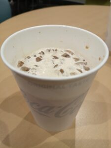 自販機の「カフェラテ」のコーヒーもなかなか味わい深いものがありました。ホットとアイスの違いはありますが、それなりの時間を要していますので一杯分ずつ豆から挽いて落としているようです。