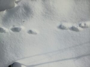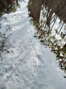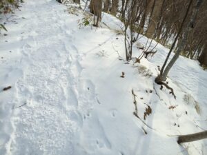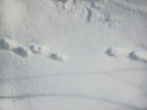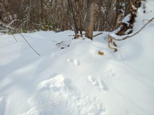 横の雪原には、野生小動物の足跡が点々と見られました。