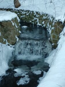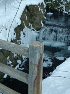 「円山川」は最近の冷え込みで、小さな滝のような流れが凍りついています。