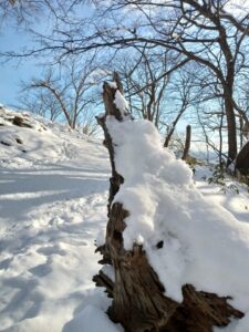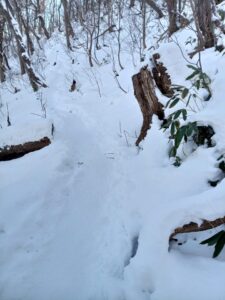 「それは、何というのですか?どこで買うことが出来ますか?」と、登ってきた中高年の女性に声をかけられました。冬の登山にはなくてはならない登山靴に装着する「チェーンアイゼン」のことです。「札幌駅近くのモンベルで買えますよ。」と、答えました。