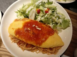 30分ほど椅子に座わり美味しい「オムパスタ」を食べおもわず顔を上げると、広い店内はお客さんで満席状態になっていました。隣には親子連れのお客さんです。3〜4歳くらいの男の子が「お子様ランチ」を食べていました。今更ながら絶対口にすることはできない「お子様ランチ」ですが、微笑ましく思えました。